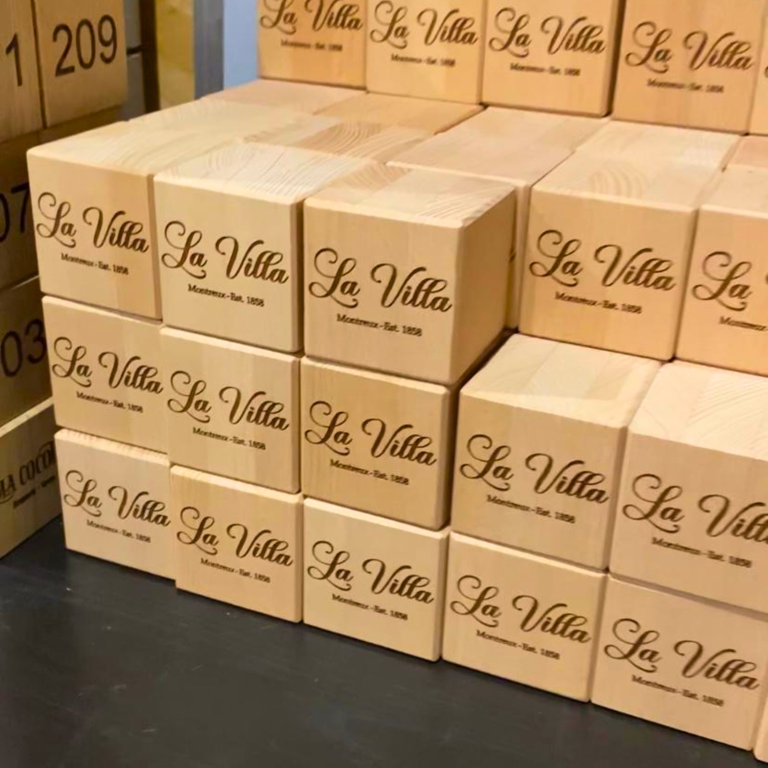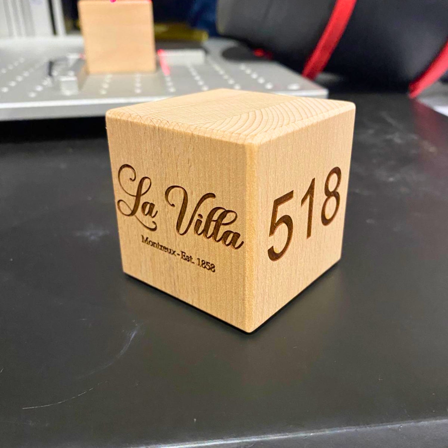Nous travaillons avec des bois de qualité comme le hêtre et le chêne, des bois sélectionnés pour leur durabilité et leur rendu esthétique après gravure.